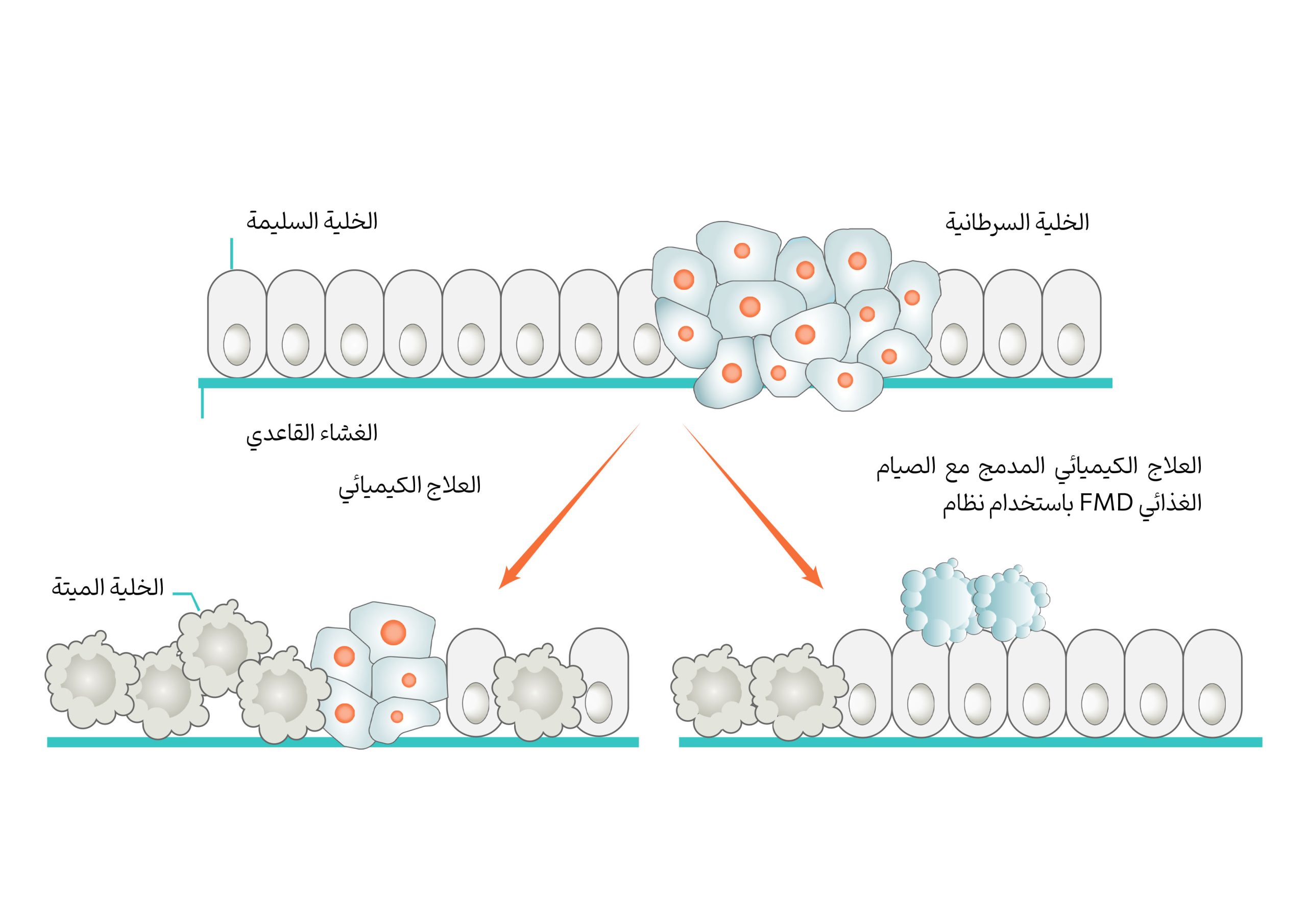 لذلك، لا يقلل تقييد السعرات الحرارية في الأنظمة الغذائية القائمة على الصيام من سمية علاجات السرطان في الخلايا السليمة فحسب [12-13]، بل يلحق أيضًا أضرارًا كبيرة بالخلايا السرطانية [6، 10]. بشكل عام، تُظهر مراجعة الأدبيات العلمية أنه على الرغم من أن التلاعب الغذائي بالعديد من المستقلبات يُظهر مزايا قبل سريرية واضحة ويظهر بعضها نتائج واعدة في التجارب السريرية، لا توجد إرشادات واضحة أو تعديلات غذائية موصى بها لمرضى السرطان. للوقاية من أنواع السرطان المختلفة أو علاجها، هناك حاجة إلى توصيات أو تركيبات غذائية مناسبة، حيث قد تختلف آثار هذه الأنظمة الغذائية اعتمادًا على النشاط الاستقلابي ومصادر الطاقة والاعتماديات الغذائية لكل نوع من أنواع السرطان [14].