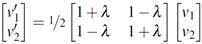where v1​ and v2​ are the monetary values of the two transacting agents’ financial resources before the transaction, and v1′​ and v2′​ are the corresponding values after the transaction. Various forms of transaction matrices have been proposed. For example, Chakrabarti and Chakrabarti (2000) used the following transaction law: