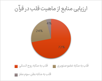 نتایج این پژوهش نشان داد 72 درصد از مقالات، قلب مطرح در قرآن کریم را ناظر به قلب معنوی و فرابدنی و 28 درصد از منابع آن را ناظر به ساحت جسمانی دانسته اند که از این تعداد، 4 درصد، آن را به بطن سوم مغز و 24 درصد آن را به عضو صنوبری در سینه تفسیر نمودهاند. همچنین به لحاظ دامنه موضوعات و مهم ترین مولفههای مطالعاتی، این مقالات به ارتباط شناسی قلب با ساحتهایی همچون نفس، مغز، قلب صنوبری، صدر و غیره پرداخته بودند؛ نیز موضوعات سلامت قلب، کارکرد قلب به طور عام و نیز قلب در نگاه عرفانی از دیگر موضوعات مطرح در این مقالات میباشند. همچنین رویکرد قرآنی مطالعاتی این منابع همراه با رویکردهای تفسیری، فلسفی- عرفانی، ادبی- معناشناختی و پزشکی همراه بوده است. در نهایت میتوان گفت آنچه در این پژوهشها آمده، تنها میتواند بخشی از حقیقت قلب در قرآن باشد و مسیر مطالعه در این حوزه نیازمند کشفیات دقیق علوم تجربی است تا جنبههای اعجازآمیز کلام وحی روشن گردد. در جمع بندی و فراترکیب دیدگاه های مختلف، میتوانیم قلب را به عنوان یک هسته مرکزی در نظر بگیریم که توسط لایههای مختلفی همچون لایه فیزیکی، روانی و معنوی احاطه شده است و این لایهها به طور متقابل بر یکدیگر تأثیر میگذارند.