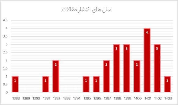 شایان ذکر است همه جامعه آماری این پژوهش در بازه زمانی سال 1388 تا 1403 نگاشته شدهاند. البته در این بازه زمانی برخی کتابها و پایاننامهها نیز به رشته تحریر درآمده اند، اما به دلیل آنکه از این آثار، مقالات علمی مستقل نیز استخراج شده بود، تنها مقالات در جامعه آماری ما قرار گرفته است. همچنین در این پژوهش تنها مقالات فارسی و انگلیسی مورد تحلیل قرار گرفته است. فهرست پژوهشهای وارد شده در این پژوهش در جدول ذیل ملاحظه میشود.